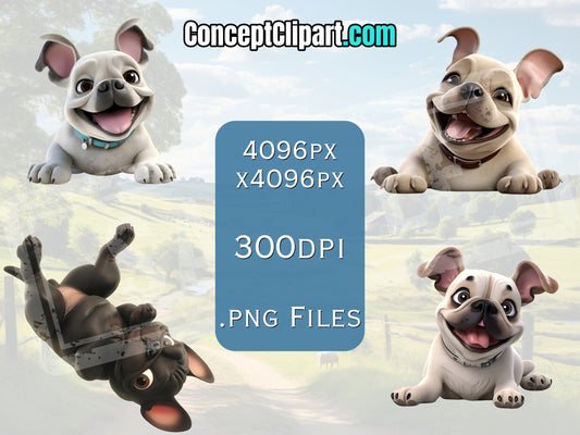10 x 3D Cartoon Style French Bulldogs Clipart Bundle