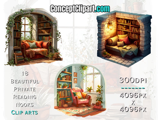 18 x "Cosy Reading Nooks" Designs Clipart Bundle