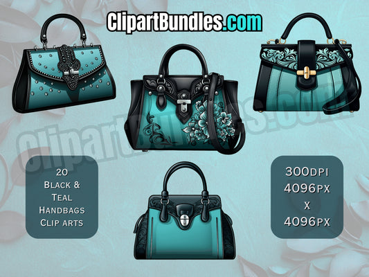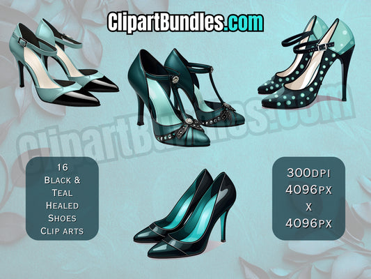 16 x Black and Teal Healed Shoes Clipart Bundle