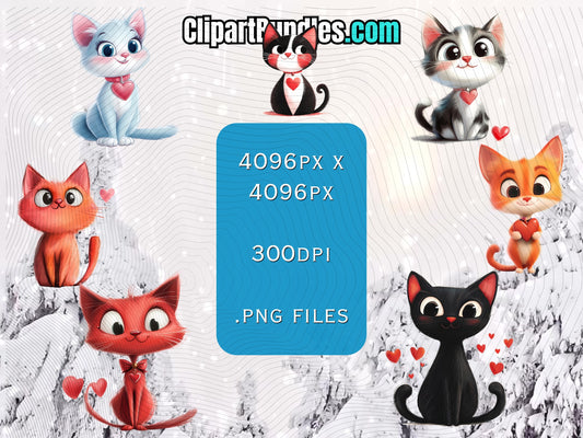 24 x Cute Valentine/Love Cats Clip art Bundle
